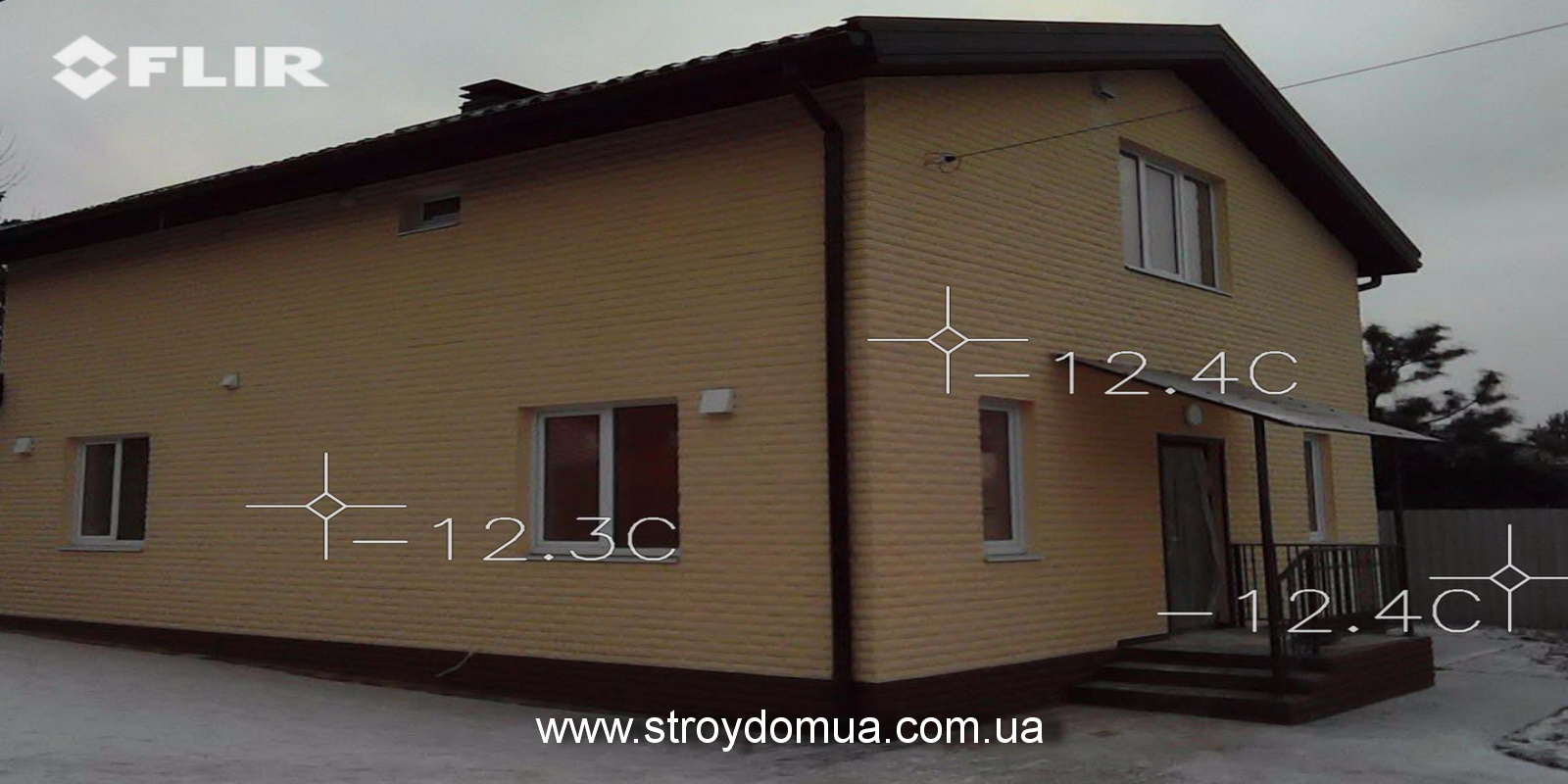 Хорошо видно, что температуры окружающего воздуха — 4,6 грд. С, а температура кирпичных стен составляет +1,6 грд. С. А разница составляет более 6 грд. С. Проще говоря, не только углы и места перекрытия являются мостиками холода. Вся стена просто излучает тепло в окружающую среду. О какой экономии энергии может идти в таком случае речь?