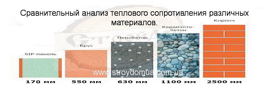 Как наглядно видно на этой схеме, тепловое сопротивление SIP – 170 мм. равно стене из газобетона 630 мм. и стене из кирпича 2500 мм. Вывод делайте сами.